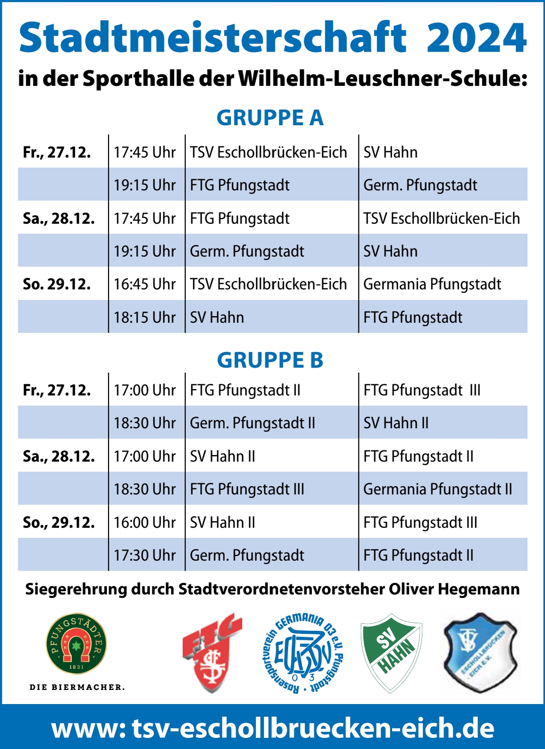 Spielplan Hallen-Stadtmeisterschaft