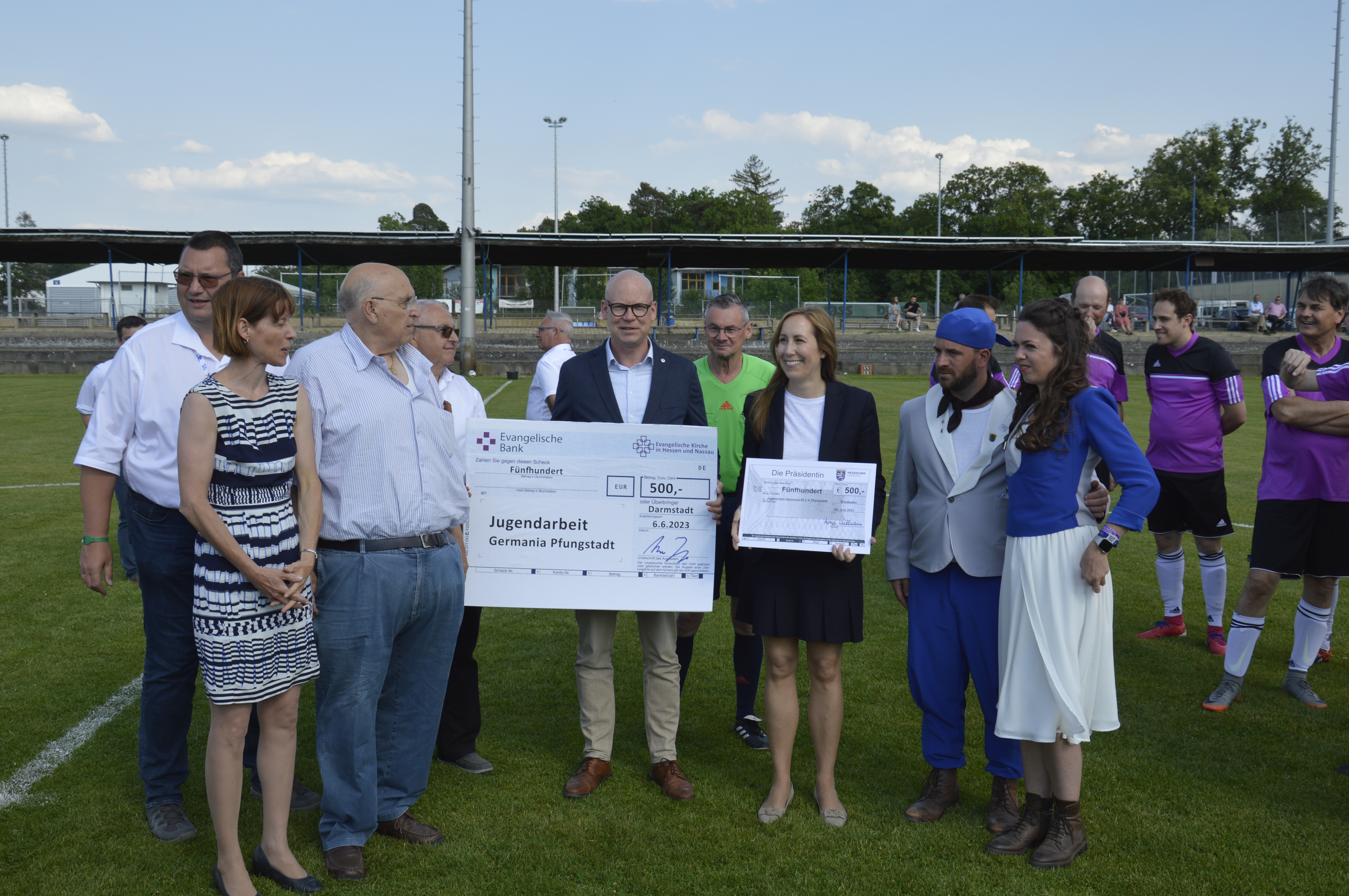 Die weltliche Auswahl siegte am Ende mit 4:1 bei bestem Wetter auf dem Rasensportplatz. Das Ergebnis war Nebensache, da die Gewinner dieses Spiels Vereinsjugendliche aus dem Pfungstädter Verein sind. Zusätzliche Anschaffungen für die Kinder des RSV Germania sind damit möglich.